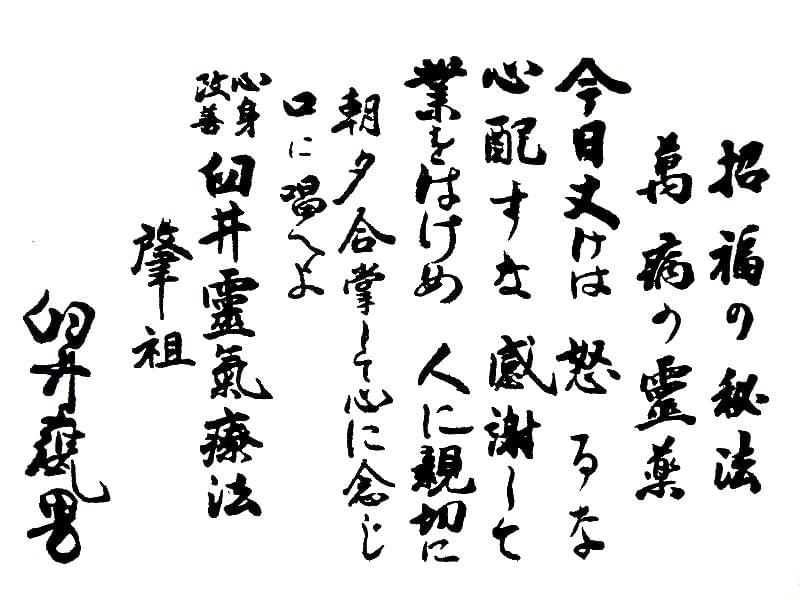 - Ispirazione: Mikao Usui ha formulato questi precetti ispirandosi ai "Principi di salute" del Dr. Bizan Suzuki, confermandone l'efficacia in funzione di un ben-ESSERE globale e stabile.